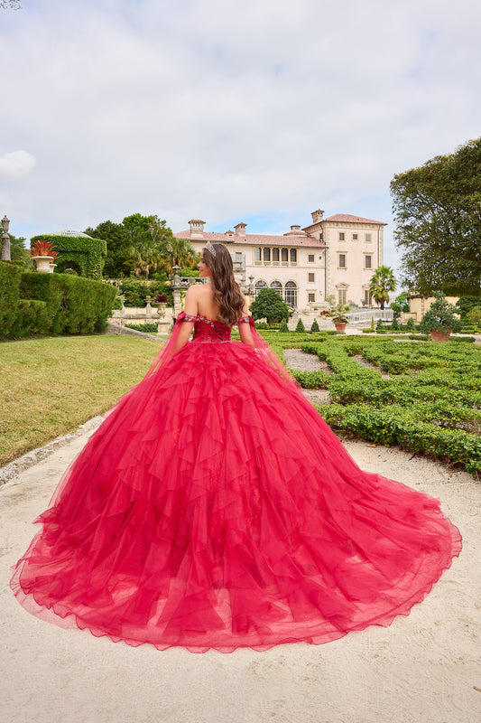 Amarra 54254 quinceanera Dress Sequin Lace Cape Sleeve Ball Gown Train 3D Flowers