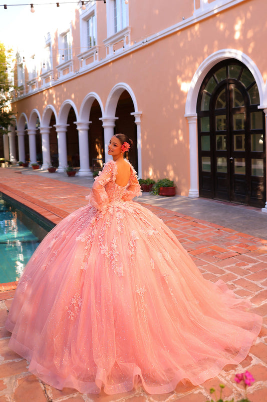 Amarra 54290 Quinceanera Dress Lace Long Sleeve Corset Ball Gown Shimmer Crystal
