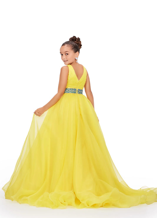 Ashley Lauren Kids 8249 Size 8 Yellow Girls Organza A Line Pageant Dress Ballgown V Neck Crystal Belt