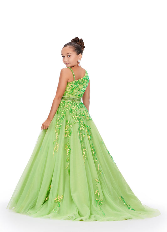 Ashley Lauren Kids 8240 Size 6 Neon Green Girls Pageant Dress One Shoulder Sequin
