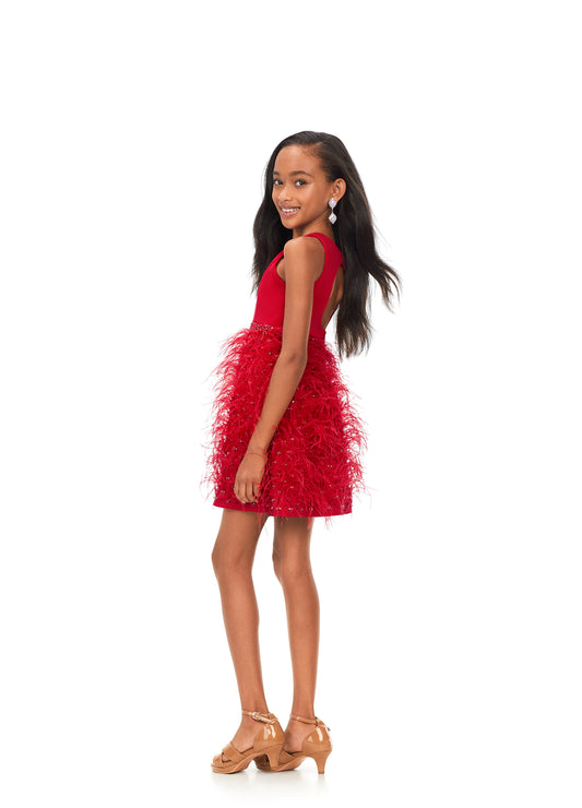 Ashley Lauren Kids 8176 Girls Pageant Cocktail Dress with Feathers and Crystals