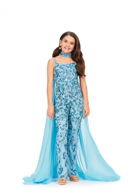 Ashley Lauren Kids 8190 Fully Beaded With Beaded Choker And Chiffon Cape Jumpsuit