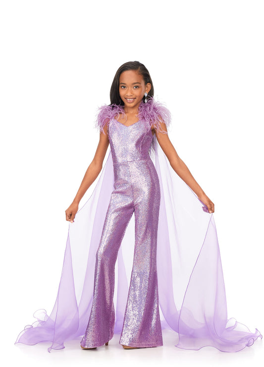 Ashley Lauren Kids 8191 Girls Beaded Jumpsuit cape Sequin One Shoulder Pageant Wear