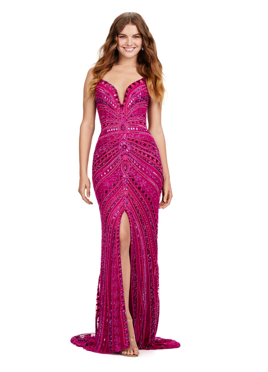 Ashley Lauren 11488 Long Prom Dress Fully Beaded Strapless Gown Sweetheart Neckline Slit Formal Pageant