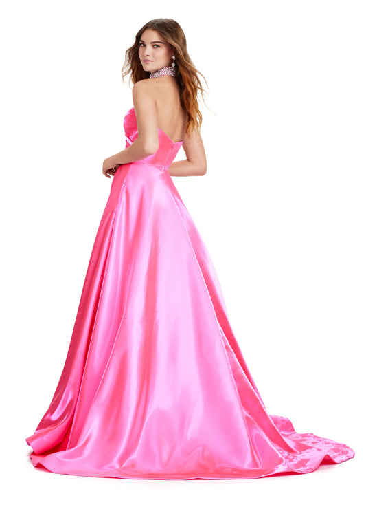 Ashley Lauren 11473 Long Prom Dress Strapless Satin Ball Gown Beaded Choker Formal Pageant