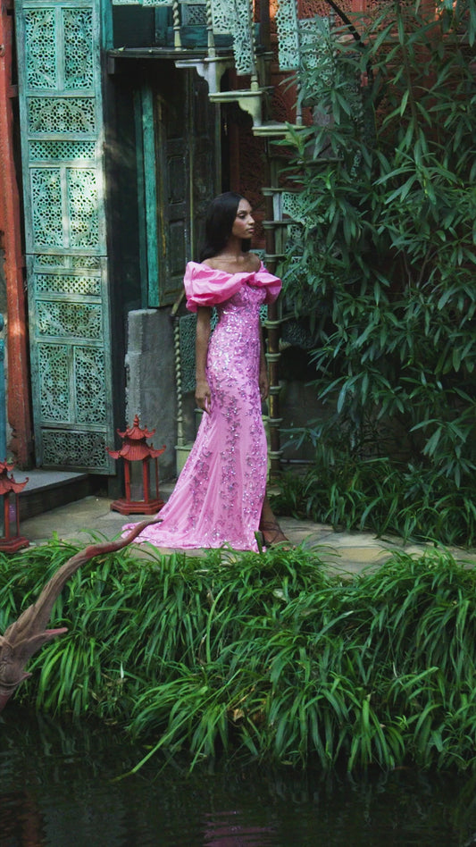 Ashley Lauren 11581 Long Prom Dress Strapless Fully Beaded Gown Oversized Taffeta Ruffle Formal Pageant