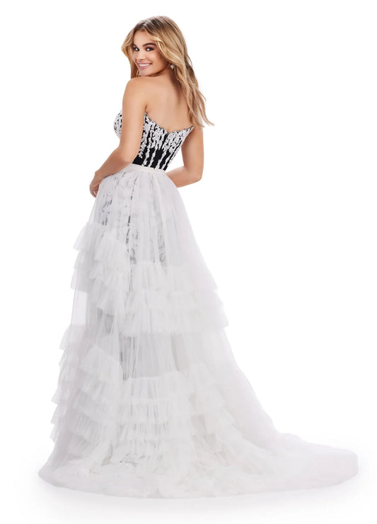 Ashley Lauren 11602 Ruffle Tulle Detachable Overskirt Layer Ruffle Pageant Skirt Train Formal