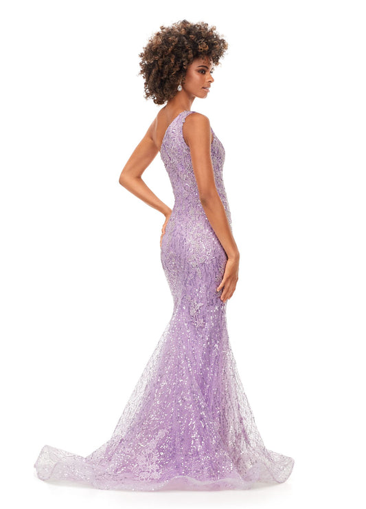 Ashley Lauren 11334 One Shoulder Lace Applique Prom Dress