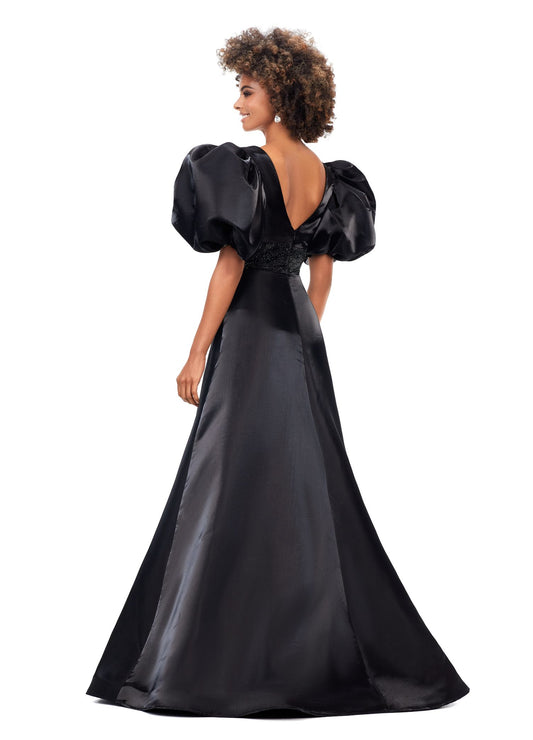 Ashley Lauren 11378 A-Line Evening Gown with Oversized Puff Sleeves Long Prom Formal Pageant