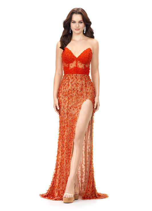 Ashley Lauren 11275 Strapless Pageant Gown with Illusion Bodice & Fringe