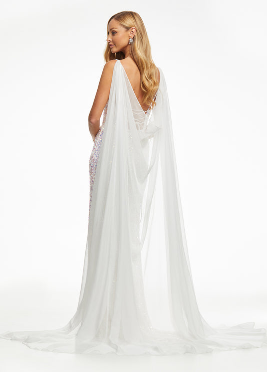 Ashley Lauren 1868 flowy chiffon cape pageant wear double shoulder one piece