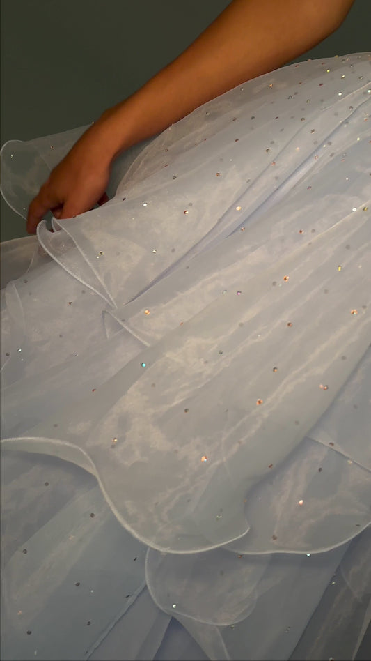 Ashley Lauren 11447 Size 12 SKY Long Prom Off Shoulder Feather Ball Gown Prom Dress Lace Corset Formal