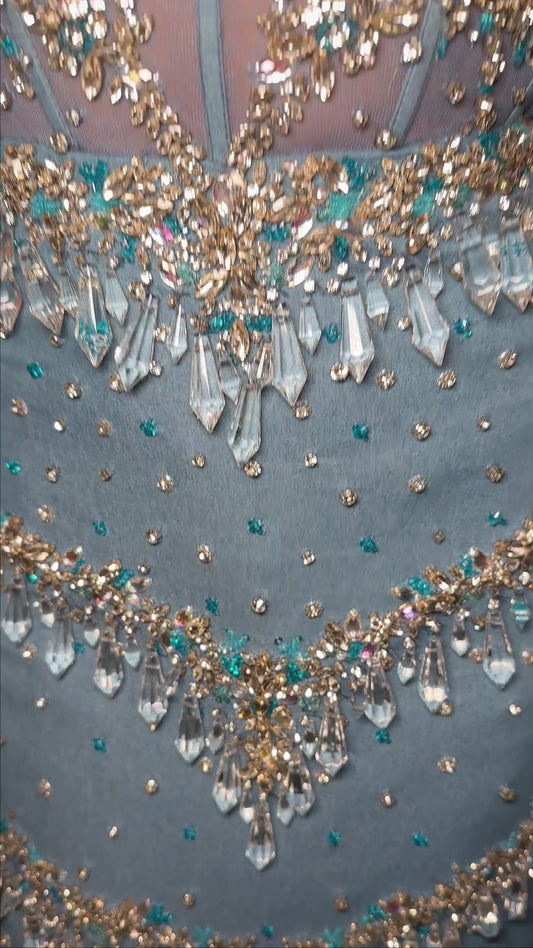 Ashley Lauren 4659 Corset Denim Spaghetti Strap Cocktail Dress Crystal Beading Formal