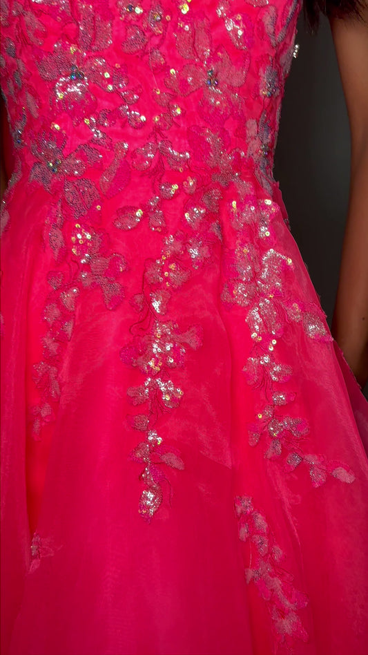 Ashley Lauren 11483 Hot Pink size 2 Prom Dress Corset Strapless Lace Gown Feather Details Formal Pageant Gown