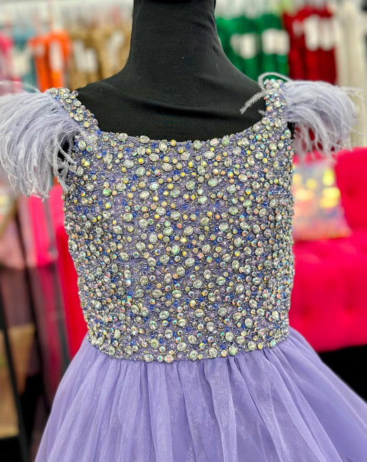 Ava Presley 39894 Size 4,6 Lilac Girls Pageant Dress Shimmer Feather Ballgown Crystal off the Shoulder Formal