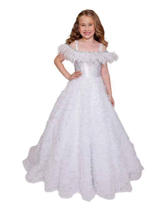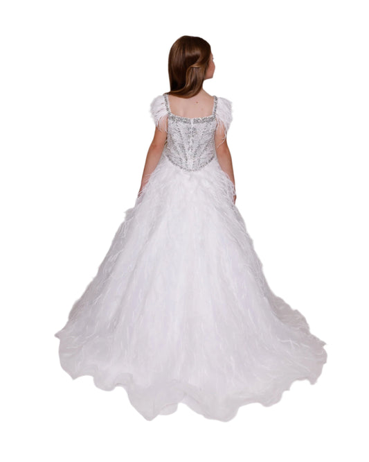 Ava Presley 39889 Girls Crystal Bodice Feather Ballgown Pageant Dress Cap Sleeve Formal