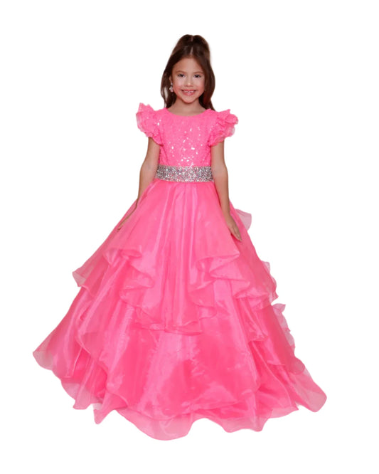 Ava Presley 39892 Girls Layer Sequin Cap Sleeve Pageant Dress Keyhole Ball Gown Train