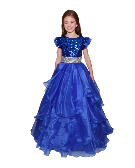 Ava Presley 39892 Size 6, 8 Royal Girls Layer Sequin Cap Sleeve Pageant Dress Keyhole Ball Gown Train