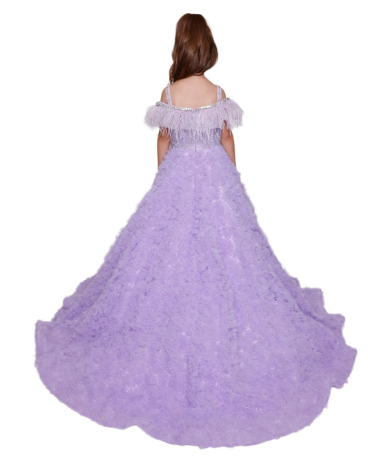 Ava Presley 28821 Size 8 Lavender Girls Pageant Dress Feather Ruffle Ballgown Crystal Bodice Gown Layer