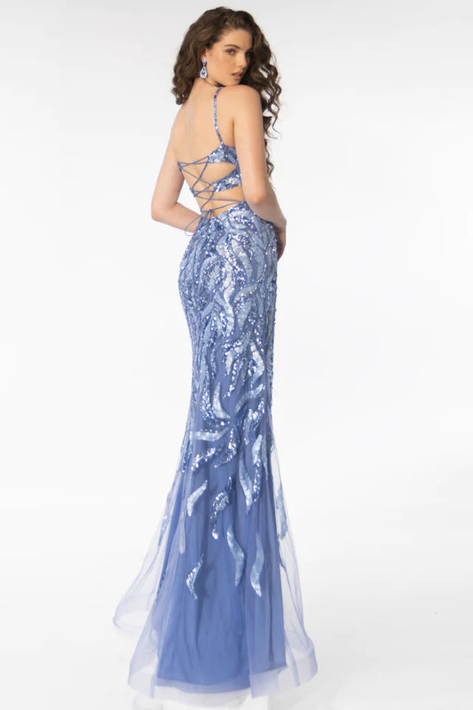 Ava Presley 39237 Long Prom Dress Open Back Cut Out High Slit Beaded Detail Formal Pageant Gown