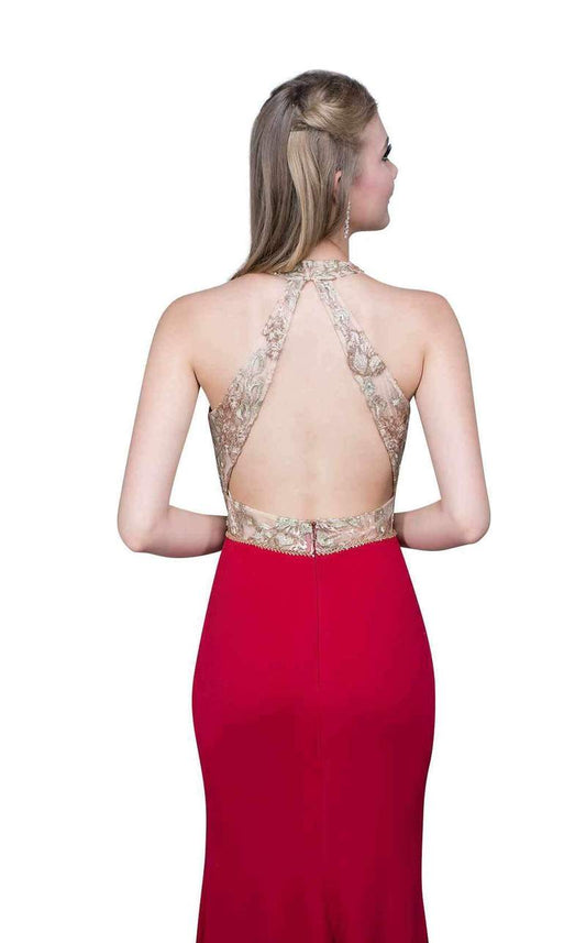 Nina Canacci 2130 Size 4 Red/Gold, Fitted Halter Lace Prom Dress Formal Gown