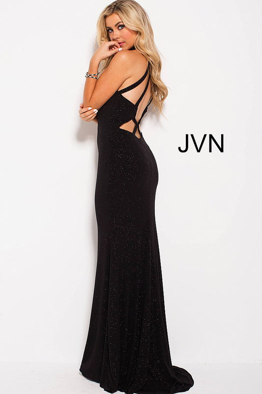 Jovani JVN 60600 Size 6 Black glitter jersey Sexy Formal Dress Backless Strappy