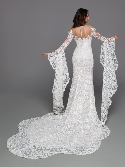 Davinci Bridal 50735 Size 10 Black/Ivory Long Bell Sleeve Lace Wedding Dress Sheer Mermaid Bridal Gown (Copy)