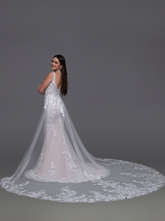 Davinci Bridal 50927 Size 10 Ivory Lace V Neck Wedding Dress Tulle Overskirt Bridal Gown