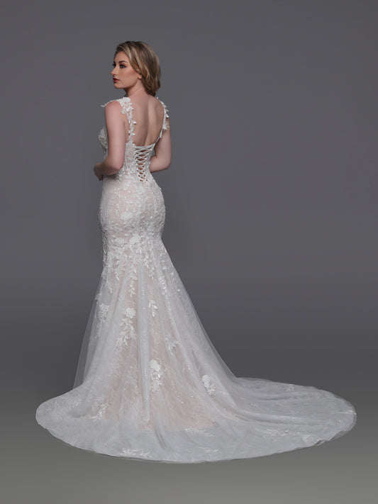 Davinci Bridal 50933 Size 8 Ivory Beaded Lace Wedding Dress Sheer Corset Mermaid Bridal Gown