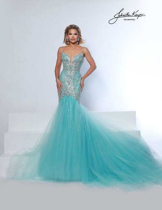 Johnathan Kayne 3165 Mermaid Dress Beaded Sequin Prom Pageant Bridal Tulle Train Scoop Neck