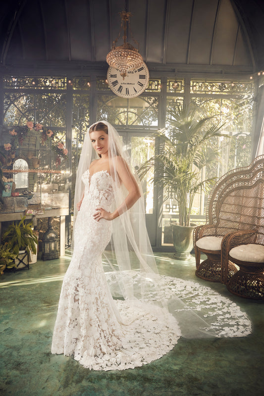 Casablanca Bridal 2447 Kimberly floral lace beaded wedding dress royal length train