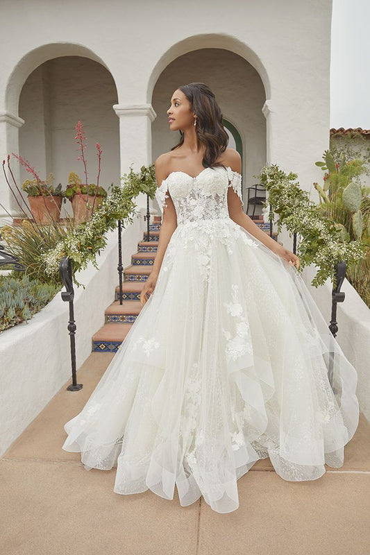 Beloved by Casablanca Bridal BL387 Remi Wedding Dress Off the Shoulder Lace Tulle Skirt