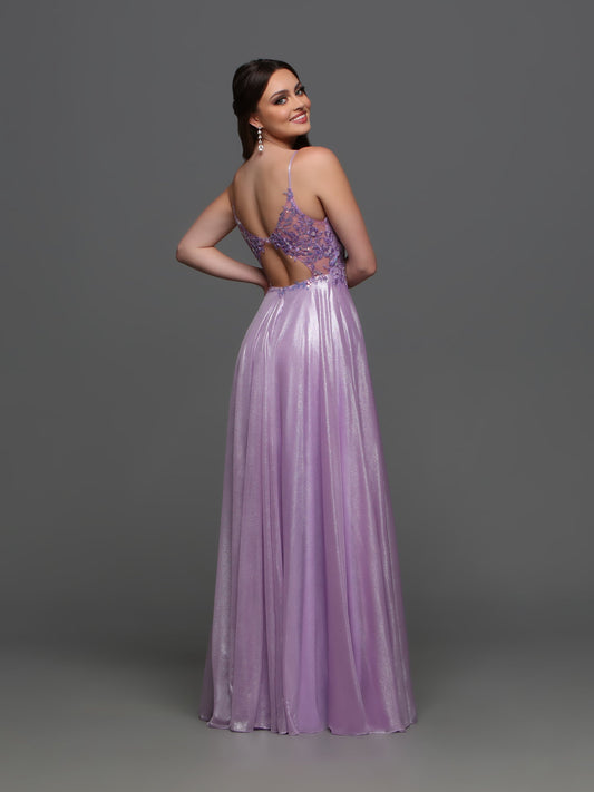 Candice Wang 72322 Size 6 Lavender Sequin Lace Metallic Prom Dress Sheer Cut Out Back Slit Formal Gown