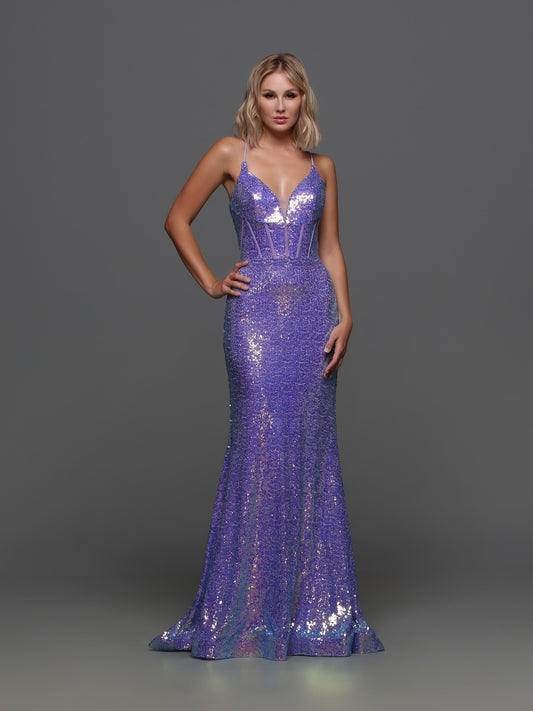 Candice Wang 72312 Size 2, 10 Lavender Long Fitted Sequin Formal Dress Tulle Overskirt Sheer V Neck Prom Gown