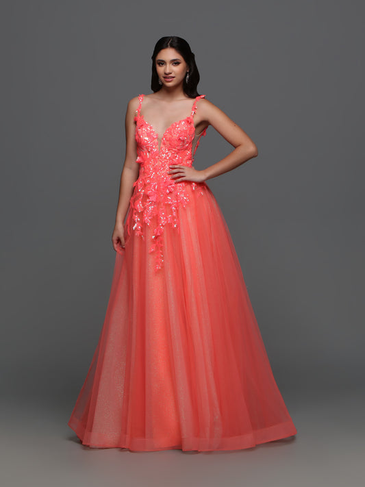 Candice Wang 72388 Size 8 Coral Long Shimmer Sequin Ballgown Prom Dress Glitter A Line Formal