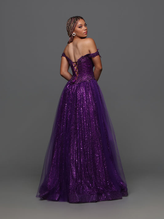 Candice Wang 72405 Size 2, 4 Purple A Line Glitter Tulle Lace Prom Dress off the shoulder Corset Formal Gown