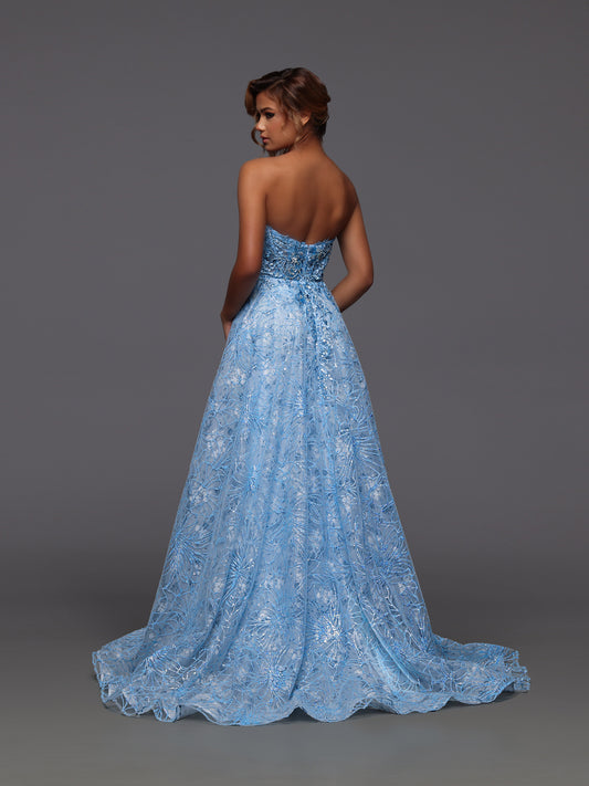 Candice Wang 72470 Size 4 Ice Blue Sheer Corset Prom Dress A Line 3D Lace Shimmer Maxi Slit
