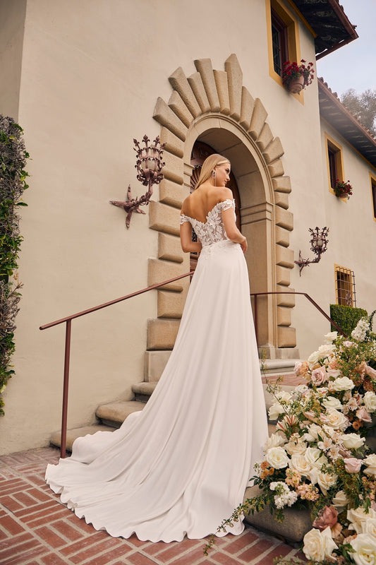 Casablanca Bridal 2554 Rochelle Wedding Dress Fit And Flare Off The Shoulder Plunging Neckline Sequin Floral Lace Train