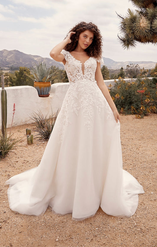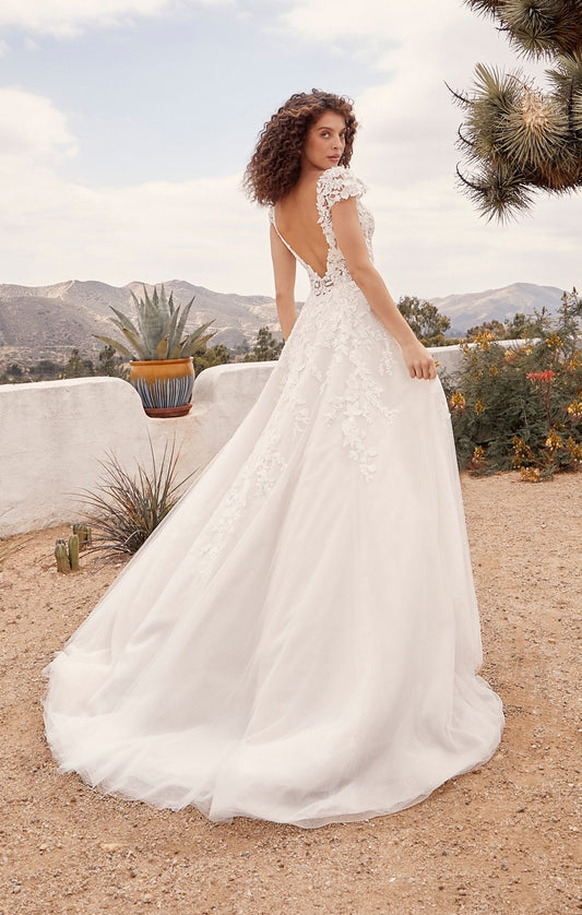 Casablanca Bridal 2551 Mirabelle A-Line Ballgown Cap Sleeves Plunging Neckline Lace Long Wedding Gown