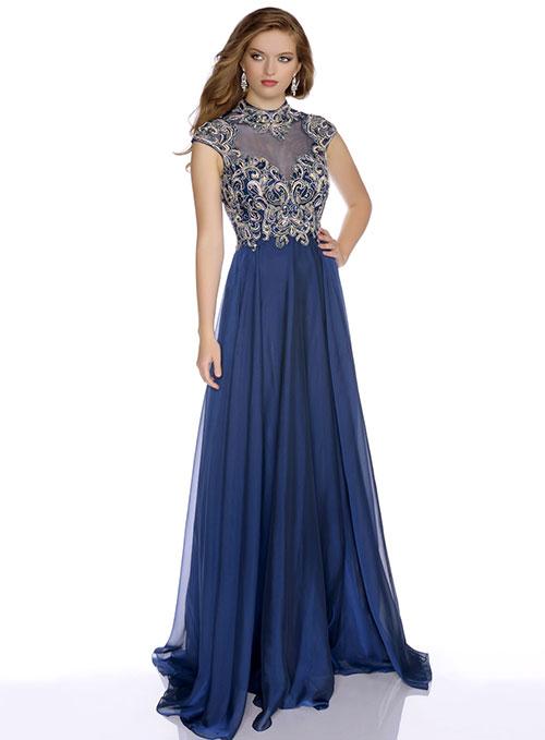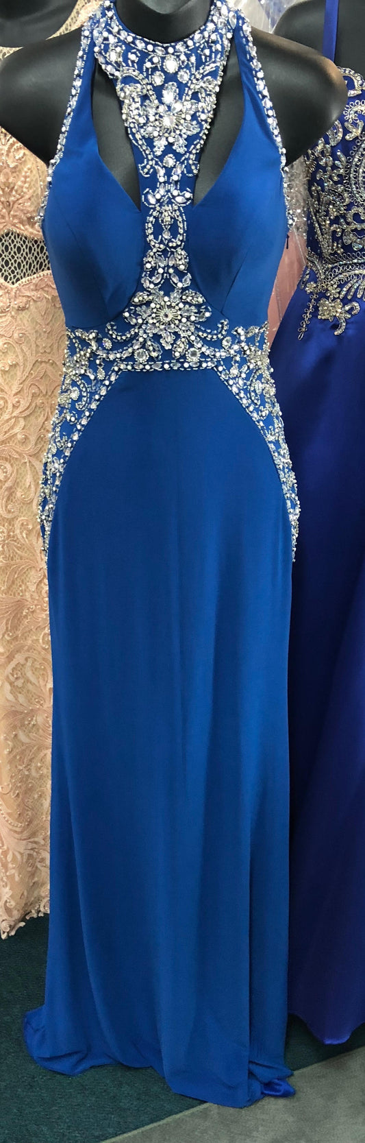 Jovani JVN48709 Size 6 Royal Blue Long A Line Evening Dress High Neck A Line Formal