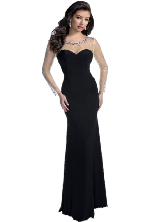 Johnathan Kayne 2795 Size 4 Crystal Sheer Beaded Fringe Long Sleeve Cocktail Dress