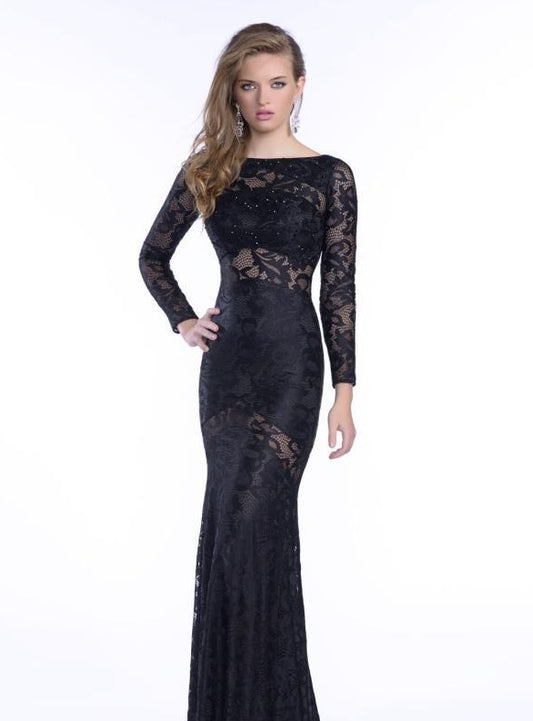 Jovani JVN66059 Size 10 Black Embroidered Gold Lace Prom Dress Sheer Formal Evening Gown