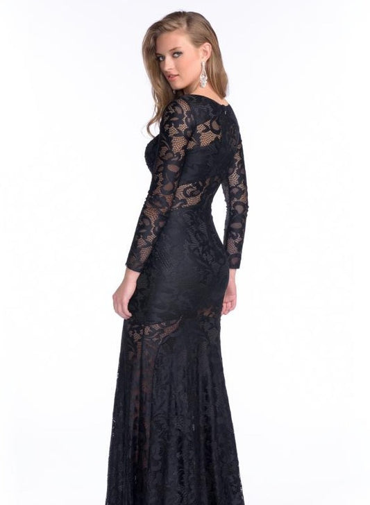 Nina Canacci M218 Size 6, 8 Taupe Long Sheer Lace Long Sleeve Formal Evening Dress Fit Flare