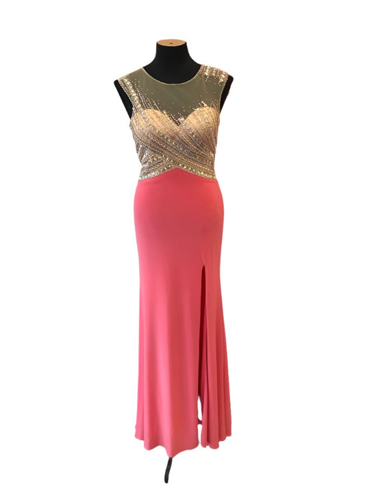 Johnathan Kayne 2320 Size 8 Hot Coral Cocktail Dress Long Sleeved Pageant Gown Formal