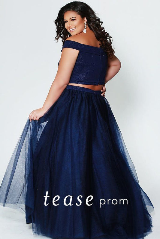 Sydneys Closet SC8111 Size 22 Blue Short Sequin Long Sleeve Plus Size Formal Cocktail dress V Neck Gown
