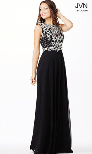 Jovani JVN60696 Size 12 Black Prom Dress Ball Gown Pockets A Line Sheer