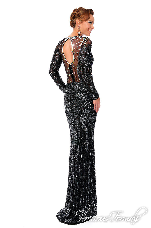 Precious Formals P9091 Size 0 Black/Pewter Pageant Dress Long Sleeve Sequin Sheer Dress