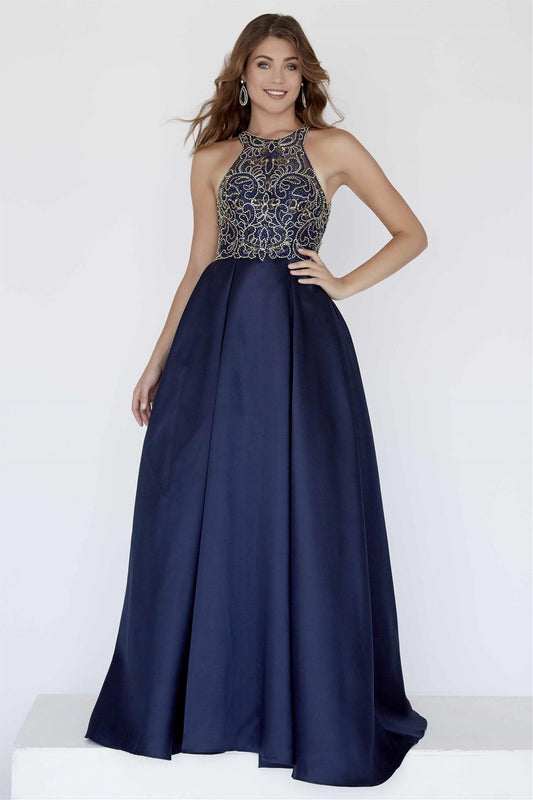 Jolene 18052 Size 4 Long A Line High Neck Prom dress Pageant Gown Evening Mother of