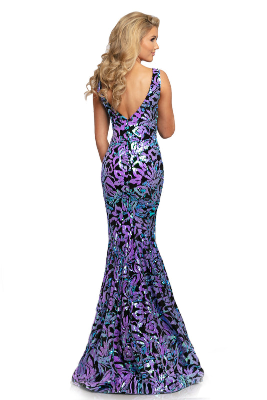 Ashley Lauren 11342 Periwinkle Size 2,4,6 Long Sequin Prom Dress High Slit V Neckline Evening Gown