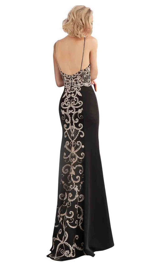 Jovani JVN66059 Size 10 Black Embroidered Gold Lace Prom Dress Sheer Formal Evening Gown